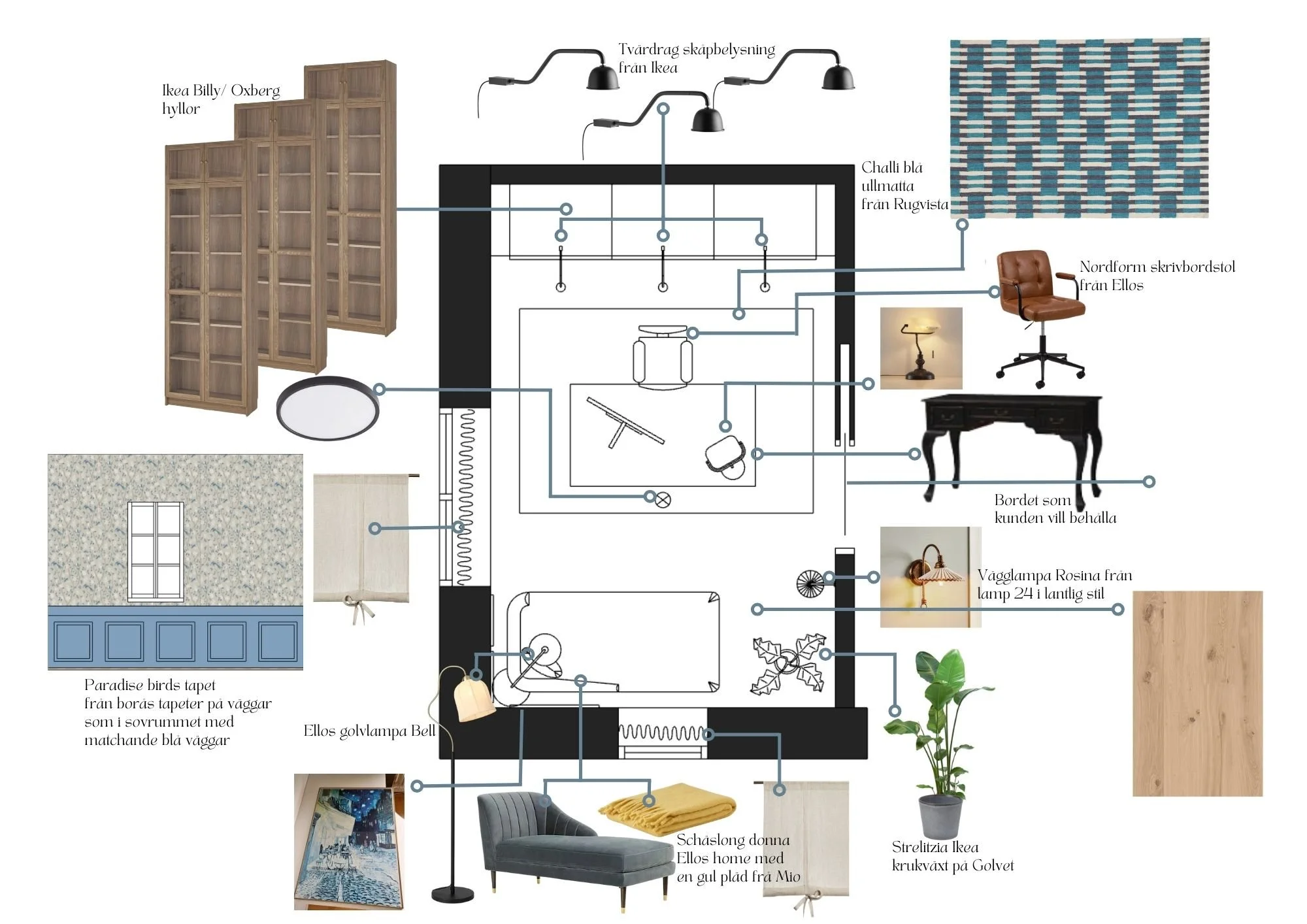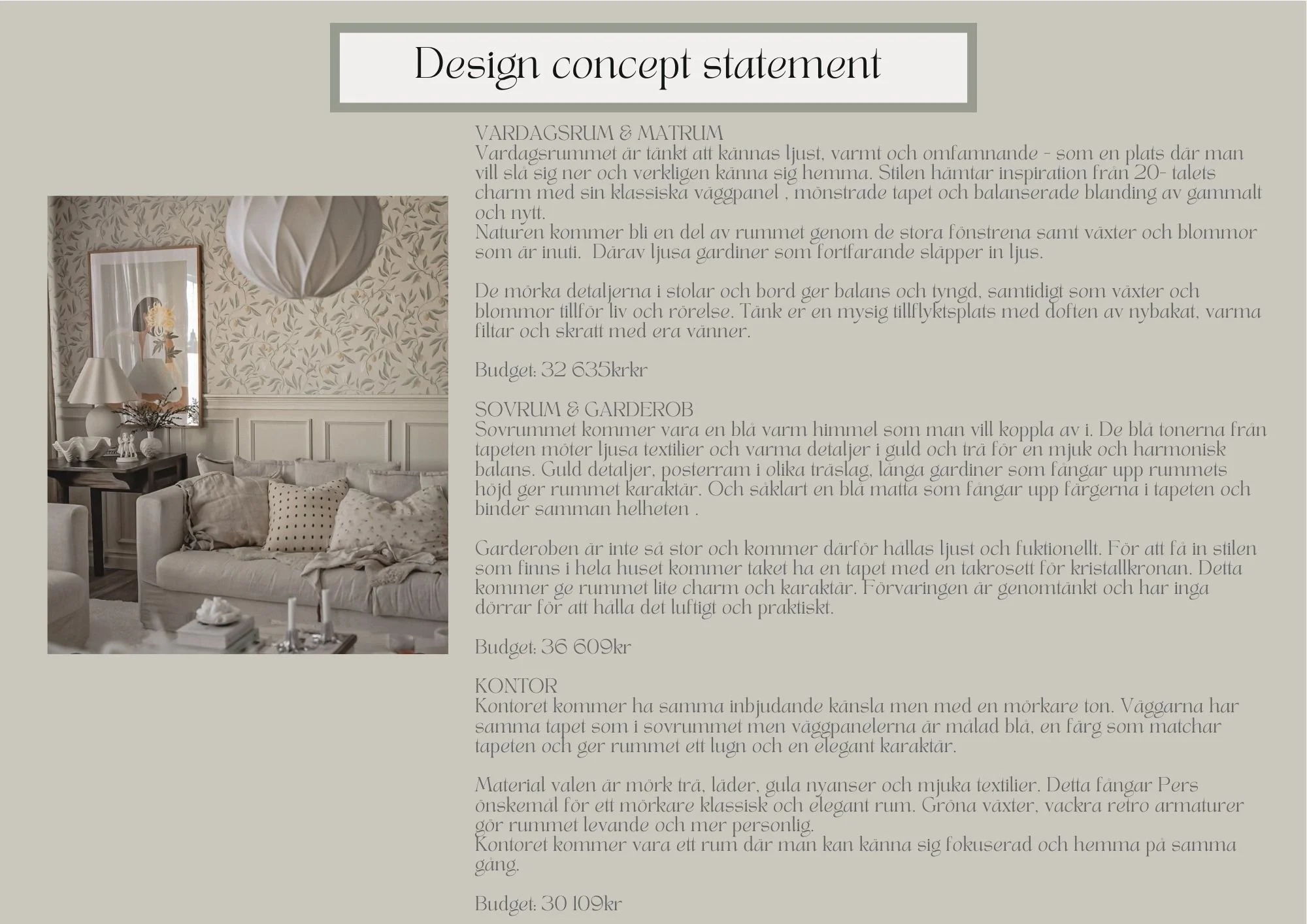 This project was about designing a few rooms for a beautiful 1920’s house in Bromma. The home is to feel warm and welcoming while keeping some furniture that the client wanted. We took some inspiration from the interior design of that era and kept the same feeling the client wished for.