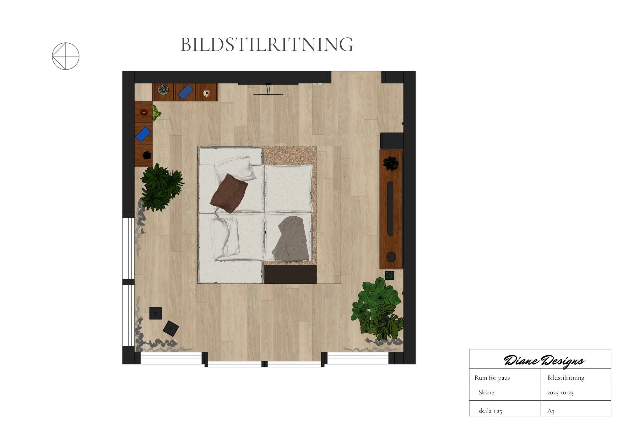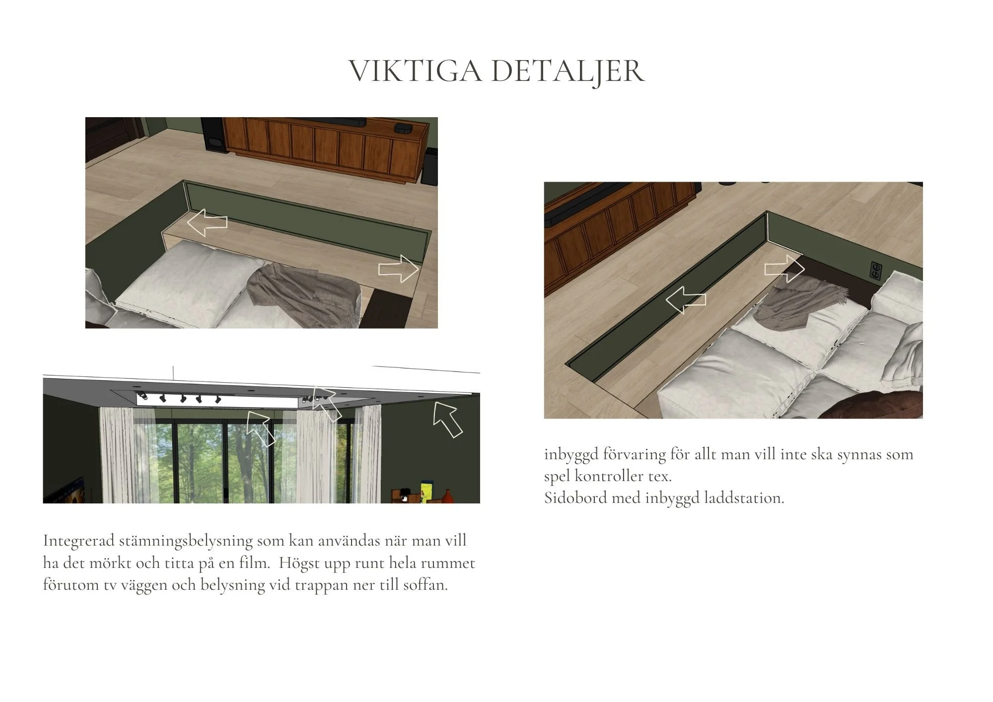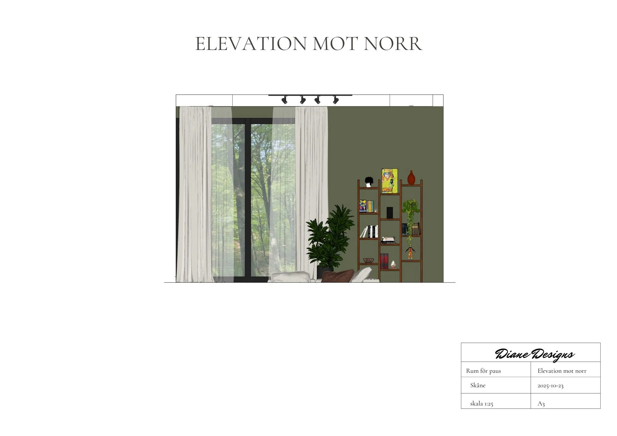A space to pause was my final school project that was directed to me and my partner. We are a big movie family, he reads books (Manga to be specific) and plays games. A room like this would be perfect for us. I have always dreamt of a sunken sofa in a room where i could escape from reality a bit, in this room when dark we can enjoy a good movie ,a little gaming session or even a nap. When the curtains are open, a cup of tea while reading a book with a view of just nature is a dream.